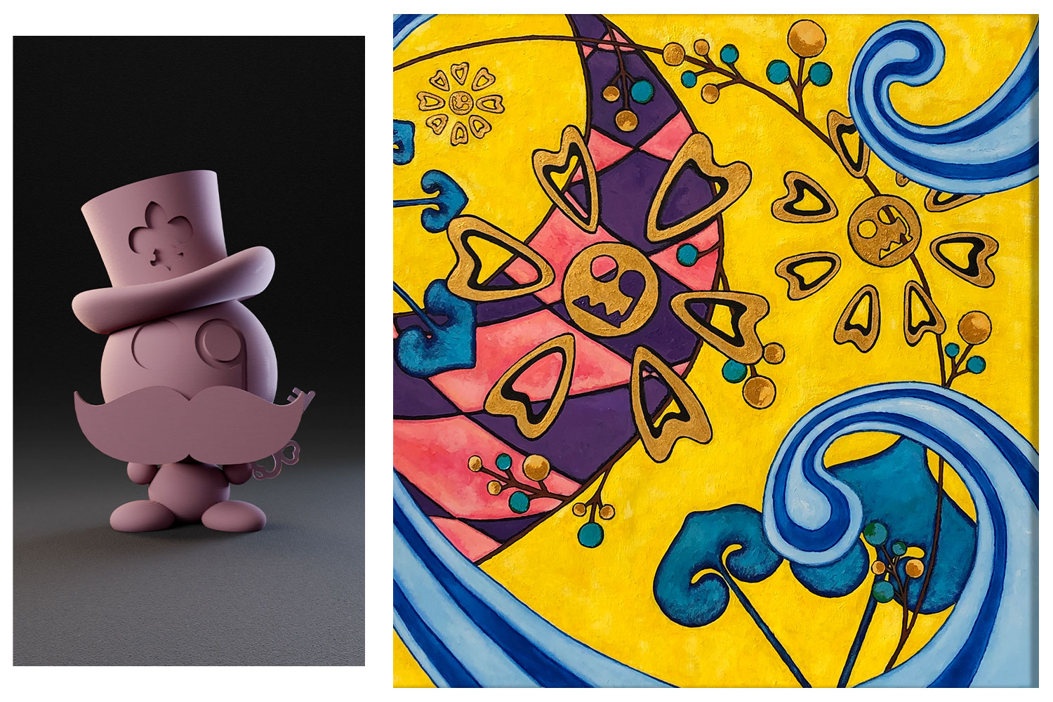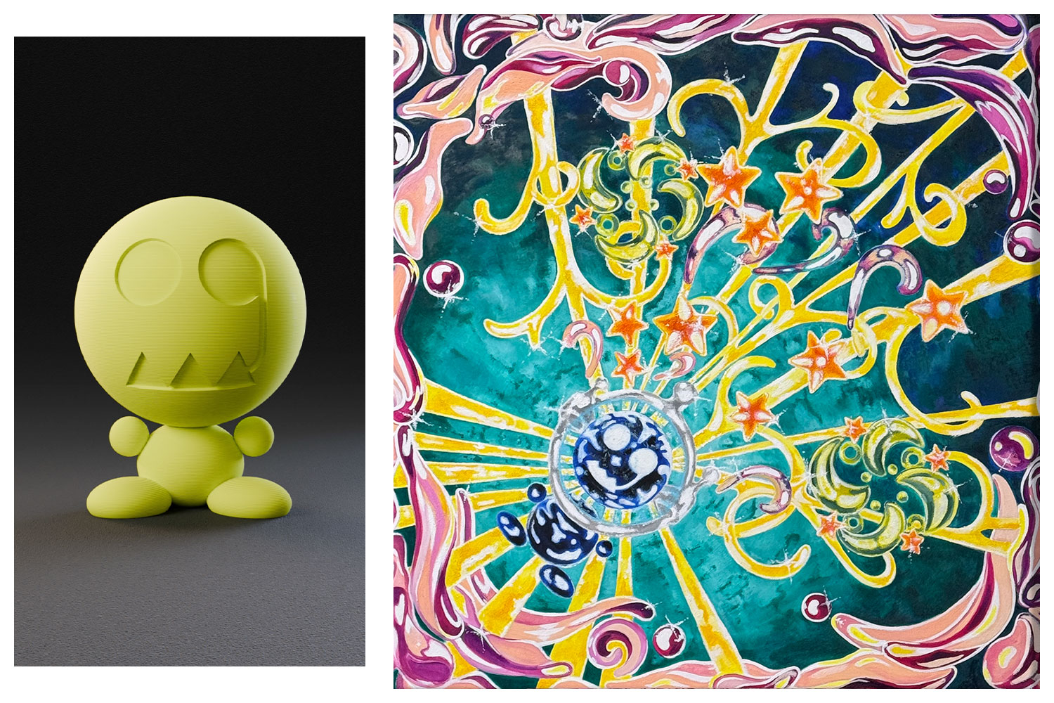 Gli Art Toys sono modellati in stampa additiva con plastica a base vegetale e acrilico colato riciclato.